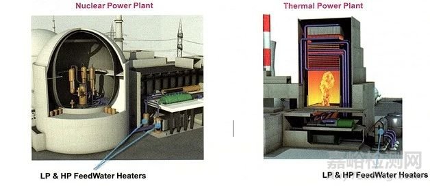圖1 核電廠(左)和熱電廠(右)中的低壓和高壓給水加熱器