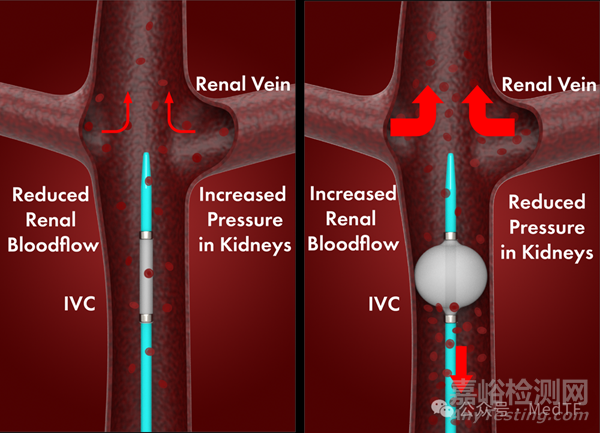 CardioFlow治療原理有點(diǎn)類似于Revamp Medical的心衰導(dǎo)管----Doraya catheter,通過降低腎靜脈周圍的壓力和降低心臟前負(fù)荷,腎臟恢復(fù)其自然功能并開始排出體內(nèi)多余液體量。只是兩種機(jī)械解決方式不同,CardioFlow采用標(biāo)準(zhǔn)大血管閉塞球囊來封堵下腔靜脈(IVC)從而降低靜脈壓,從而產(chǎn)生更大壓力梯度,從而降低中心靜脈和腎壓,進(jìn)而增加尿量,以排出多余的液體量。根據(jù)VenoDynamics介紹CardioFlow能夠比目前的治療更快、更有效地改善患者癥狀。