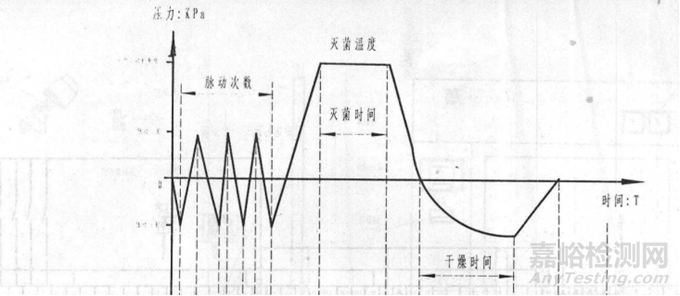 織物滅菌程序:可設(shè)置參數(shù)為脈動次數(shù)、滅菌溫度、滅菌時間、干燥時間;滅菌步驟分為脈動、升溫、滅菌、排汽、干燥、結(jié)束六個階段。詳見織物工作曲線圖: