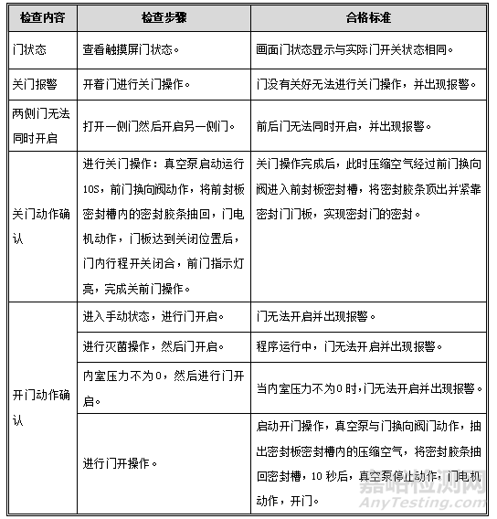 可接受標(biāo)準(zhǔn):每項操作均應(yīng)符合下表中的標(biāo)準(zhǔn)要求。記錄:見OQ表2:開關(guān)門檢查記錄。