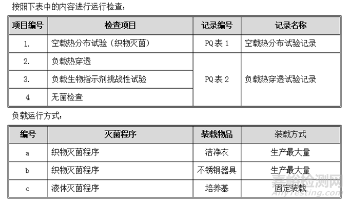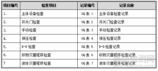 記錄:見OQ表7:液體滅菌程序檢查記錄。