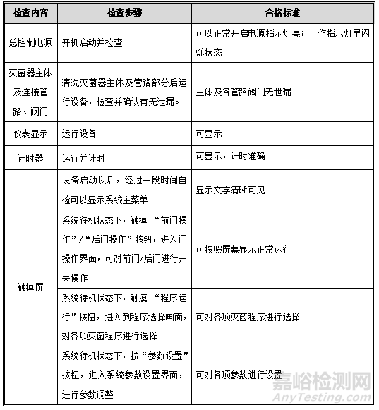 目的:確認(rèn)設(shè)備的運(yùn)行程序與使用說明書的描述相同。