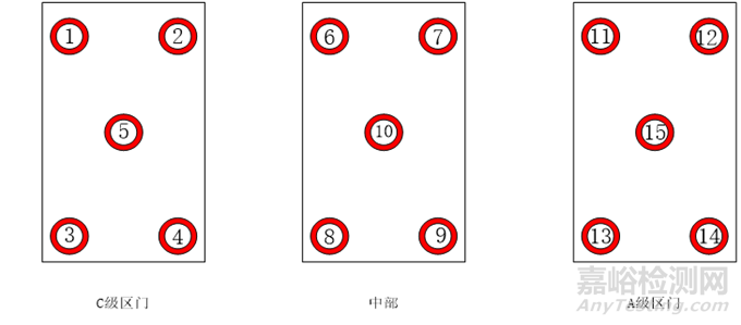 2.探頭布置:在脈動真空滅菌器的內(nèi)室內(nèi)均勻分布16支溫度探頭,溫度探頭不得與內(nèi)室接觸,第16支探頭放置溫度控制探頭處(排水口),詳細(xì)布局圖見下圖: