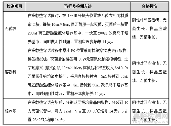 程序:在進(jìn)行負(fù)載熱穿透試驗的同時,按下表取出滅菌后相應(yīng)的裝載物品,進(jìn)行無菌檢查。