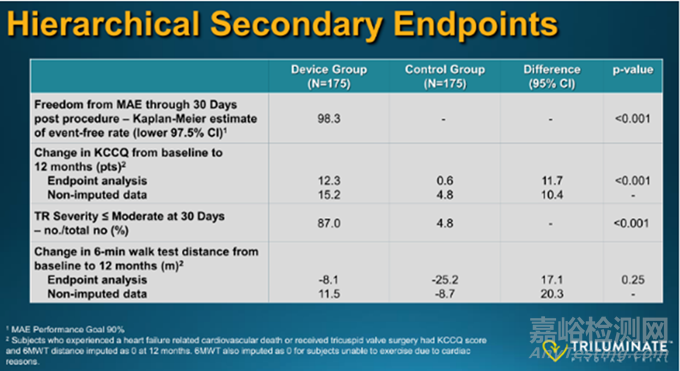 次要終點(diǎn):TEER組30天內(nèi)98.3%的患者未發(fā)生主要不良事件;1年隨訪時,TEER組KCCQ評分改善明顯優(yōu)于對照組(P<0.001);