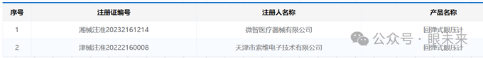 目前在我國,鮮有便捷、快速、家用自測的回彈式眼壓檢測設備,市場缺口巨大。截至2023年3月14日,我國回彈式眼壓計只有三款產(chǎn)品獲得國家藥品監(jiān)督管理局批準上市(兩款國產(chǎn),一款進口),生產(chǎn)廠商分別是微智醫(yī)療器械有限公司、天津市索維電子技術有限公司、芬蘭愛凱有限責任公司,有較大的國產(chǎn)替代空間。