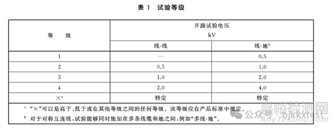 二、浪涌沖擊試驗(yàn)測(cè)試等級(jí)