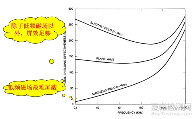2、結(jié)構(gòu)設(shè)計(jì)時(shí),并不用特別關(guān)心材料的厚度:除了低頻(10kHz以下)磁場(chǎng)以外,即使0.5mm厚的薄鋁板,屏蔽效能也容易超過(guò)60dB,因此,除了低頻磁場(chǎng)的場(chǎng)合,并不需要特別考慮金屬材料的屏蔽效能是否滿足要求;