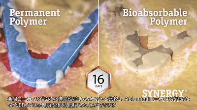 SYNERGY使有有應(yīng)用實(shí)績(jī)的鉑合金,并按照客戶定制出相應(yīng)的結(jié)構(gòu)形狀,成為市面上銷售的支架中屬于做到最薄的。與普通支架相比較,SYNERGY能更快促進(jìn)皮化。普通支架由于藥劑無限期地停留于支架,有可能導(dǎo)致后期對(duì)人體有害的支架血栓癥。而SYNERGY支架不同,在3個(gè)月藥劑溶出之后,在高分子也被完全吸收之后,血管開始自我痊愈修復(fù)。減少高分子物質(zhì)長(zhǎng)期殘留,排除了會(huì)永遠(yuǎn)引起炎癥的原因,減少后期支架血栓癥的發(fā)作風(fēng)險(xiǎn)。