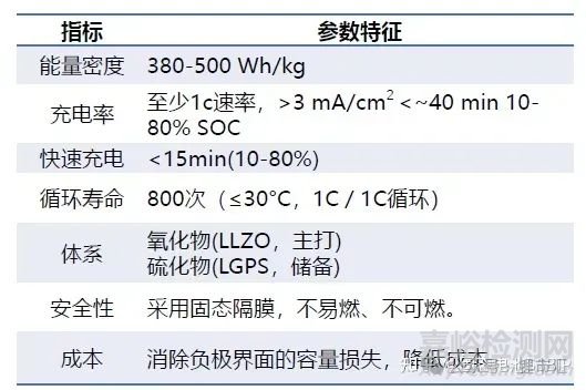 QS固態(tài)電池的技術(shù)指標(biāo)