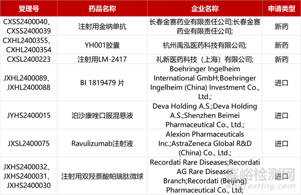 1. CDE新藥受理情況(04月11日)