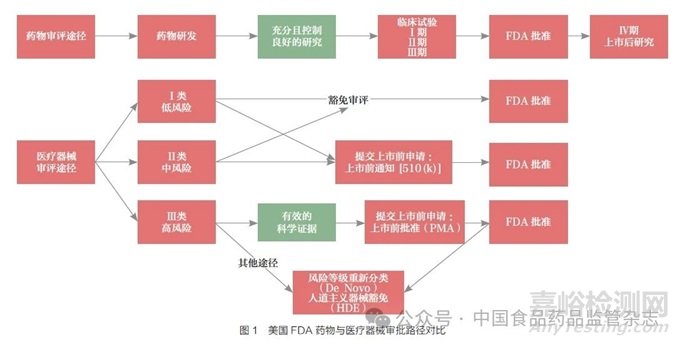 3、 美國(guó)FDA 對(duì)藥物及醫(yī)療器械監(jiān)管審批路徑的差異