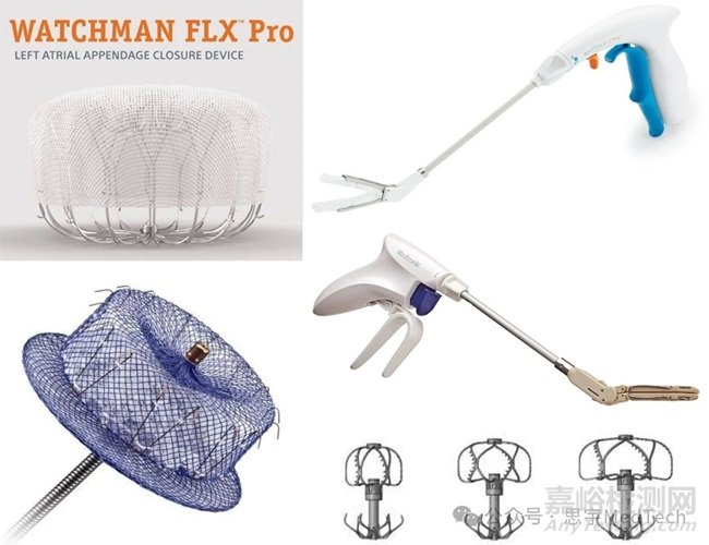 產品:WATCHMAN(波科)、Amulet(雅培)、AtriClip(AtriCure)、Penditure(美敦力)、源自Laminar公司的左心耳封堵系統(tǒng)(強生)