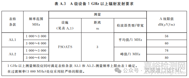 A類產(chǎn)品1GHz以上輻射騷擾發(fā)射限值要求