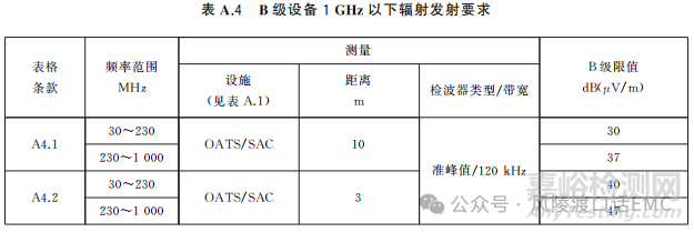 A類產(chǎn)品1GHz以下輻射騷擾發(fā)射限值要求