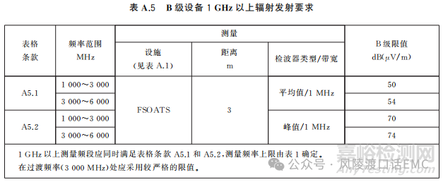 B類產(chǎn)品1GHz以上輻射騷擾發(fā)射限值要求