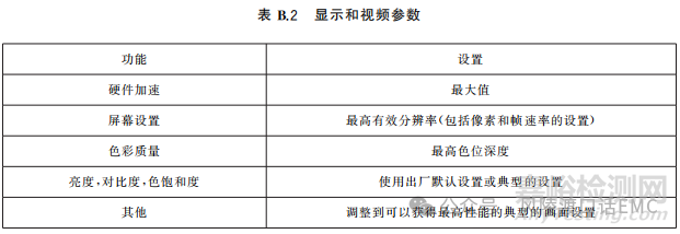 根據(jù)EUT的電路設(shè)計(jì)與工作特性,選擇EUT輻射騷擾場(chǎng)強(qiáng)最差模式,EUT工作電流電壓、EUT負(fù)載情況、EUT技術(shù)參數(shù)設(shè)置均可能影響EUT的輻射騷擾場(chǎng)強(qiáng)測(cè)試結(jié)果,應(yīng)選擇最惡劣的情況進(jìn)行測(cè)試,如下表對(duì)顯示和視頻參數(shù)的設(shè)置要求。