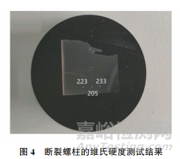對(duì)金相試樣進(jìn)行維氏硬度測(cè)試,結(jié)果如圖4所示,由圖4可知:測(cè)點(diǎn)處的硬度較高。