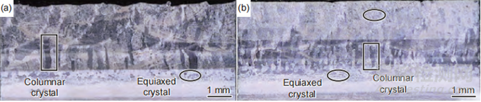 ?。╝)截面宏觀組織;(b)截面微觀組織;