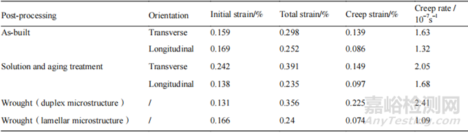航空發(fā)動機核心零部件往往在高溫高壓環(huán)境下長期服役,材料易發(fā)生蠕變行為,進(jìn)而發(fā)生結(jié)構(gòu)破壞,故抗蠕變性能是增材制造 600 ℃ 高溫鈦合金結(jié)構(gòu)件安全服役的重要標(biāo)準(zhǔn),其受晶粒尺寸、相組成、相形貌等多種因素的影響。