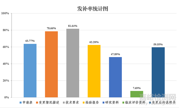 圖1 變更注冊技術(shù)審評常見資料發(fā)補率統(tǒng)計圖