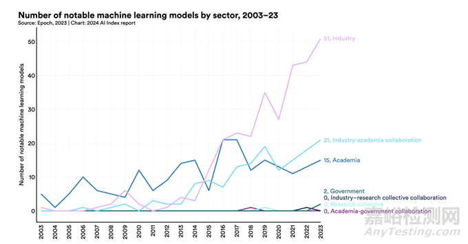 2023年,產(chǎn)業(yè)界發(fā)布了51個(gè)值得關(guān)注的機(jī)器學(xué)習(xí)模型,而學(xué)術(shù)界僅貢獻(xiàn)了15個(gè)。缺乏算力的學(xué)術(shù)界在當(dāng)下人工智能的發(fā)展上仍然處于劣勢(shì),推動(dòng)了相關(guān)人才從學(xué)術(shù)屆向產(chǎn)業(yè)界轉(zhuǎn)移。2019年,美國(guó)和加拿大新增加的人工智能領(lǐng)域教師有13%來(lái)自產(chǎn)業(yè)界。到2021年,這一數(shù)字已下降至11%,2022年進(jìn)一步下降至7%。