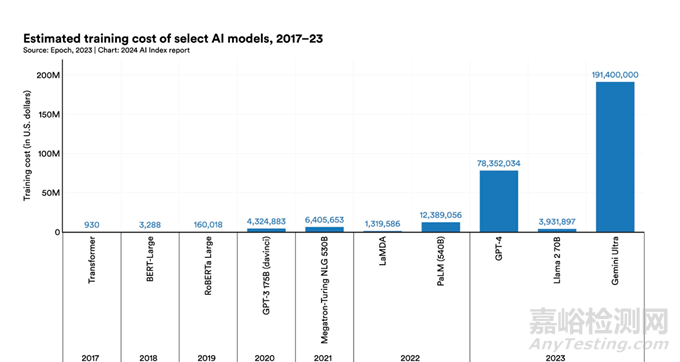 OpenAI的GPT-4訓(xùn)練成本高達(dá)7800萬(wàn)美元,而Google的Gemini Ultra更是達(dá)到了驚人的1.91億美元。