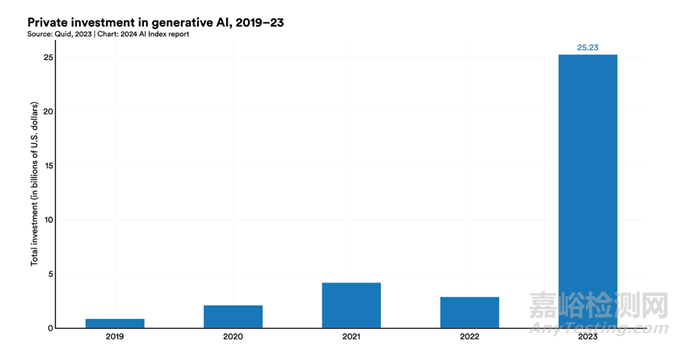 生成式人工智能的領(lǐng)域資金比2022年增長(zhǎng)了近八倍,達(dá)到252億美元。