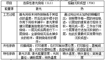 目前較為成熟的聚醚醚酮增材制造工藝包括選擇性激光燒結(Selective Laser Sintering, SLS)和熔融沉積成型(Fused Deposition Modeling,F(xiàn)DM),又被稱為熔絲成型(Fused Filament Modeling,F(xiàn)FM)或熔絲制造(Fused Filament Fabrication,F(xiàn)FF)。兩種工藝分別采用前文提到的粉末和線材作為原材料,采用不同的能量源進行熔化后逐層堆積(見表2)。不同打印工藝參數(shù)組合將直接影響成型效果。這些工藝參數(shù)既是產品研制需要重點解決的關鍵點,也會直接反映在終產品性能表現(xiàn)上,應在上市前監(jiān)管中予以重點關注。需要注意的是,性能指標應與預期用途相匹配,而非以單一“高指標”為目標。例如在承力部位需要剛度較大的材料,而在非承力但高頻疲勞部位需要韌性較大的材料。