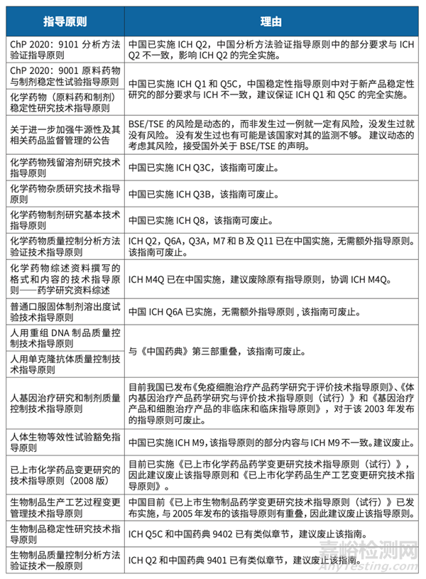 推薦廢止的藥學(xué)部分指導(dǎo)原則清單