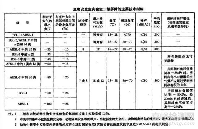 生物安全實(shí)驗(yàn)室二級屏障的主要技術(shù)指標(biāo)