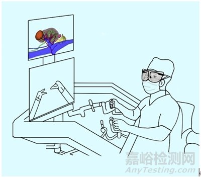 外科醫(yī)生位于醫(yī)生控制臺(tái),通過(guò)使用手動(dòng)控制器(主控制器)和一組腳踏板(如有)來(lái)控制手術(shù)器械和內(nèi)窺鏡(如有)的所有運(yùn)動(dòng)。內(nèi)窺鏡用于采集手術(shù)區(qū)域的立體圖像,外科醫(yī)生在3D觀察器(圖1)或者佩戴3D眼鏡在顯示屏(圖2)上觀察患者解剖和手術(shù)器械的視圖及其他用戶(hù)界面特征。本文圖示僅為示例,實(shí)際不同廠家結(jié)構(gòu)設(shè)計(jì)有所不同。