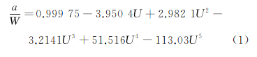 當(dāng)0≤a/W≤1時,式(3),(4)的精確度不大于1%;當(dāng)0.3≤a/W≤0.9時,式(3),(4)與式(1),(2)的等價程度不大于0.05%。因此,若以a/W為自變量,當(dāng)0.3≤a/W≤0.9時,式(1)可作為式(3)的近似解。由于式(1)與式(3)相比更便于計算,因此將式(1)作為常用柔度函數(shù)關(guān)系式。