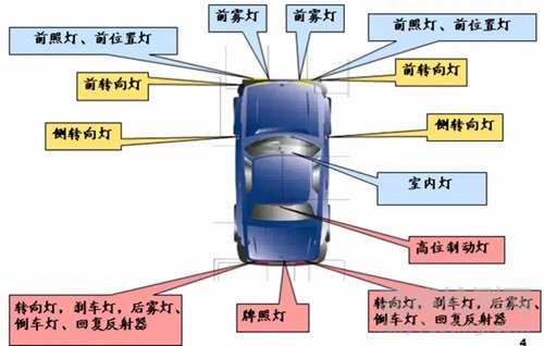 車燈被喻為汽車的眼睛,是集照明、信息交流、外觀美化等功能為一體的汽車關(guān)鍵零部件之一,對(duì)汽車的實(shí)用性、安全性和外觀有重要影響。日常生活中,我們按其用途將車燈分為外部照明、內(nèi)部照明及燈光信號(hào)三大類。第一類外部照明燈,又稱外照燈,主要有前照燈、后照燈、前側(cè)燈、霧燈、牌照燈和小燈等;第二類內(nèi)部照明車燈,包括頂燈、儀表燈、工作燈、指示燈、車廂燈、車門(mén)燈等;第三類燈光信號(hào)車燈,汽車上燈光除照明外,還有一些信號(hào)燈作為汽車使用中其他車輛或行人的燈光信號(hào)(或標(biāo)志)。汽車燈光信號(hào)系統(tǒng)包括前、后轉(zhuǎn)向燈、倒車燈等。