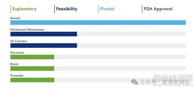 在一項對約400名接受癌癥手術(shù)的參與者進行的臨床試驗中,62名腫瘤邊緣呈陽性的患者中有9人避免了后續(xù)手術(shù)。與此同時,LumiSystem組357名患者中有27人在標準腫瘤切除術(shù)后切除了額外的腫瘤組織,其中22人最初被認為是陰性邊緣。由于6名患者出現(xiàn)副作用,停止使用Lumisight顯像劑;兩名患者出現(xiàn)了與培古利嗪相關(guān)的嚴重不良事件。該研究結(jié)果于2023年4月發(fā)表在《新英格蘭醫(yī)學(xué)雜志證據(jù)》雜志上。此外Lumicel還在研究其在胃腸道腫瘤、肉瘤和腹膜轉(zhuǎn)移瘤以及腦癌和前列腺癌中的聯(lián)合成像方法,其中前列腺癌很難用CT、PET或MRI掃描檢測到。