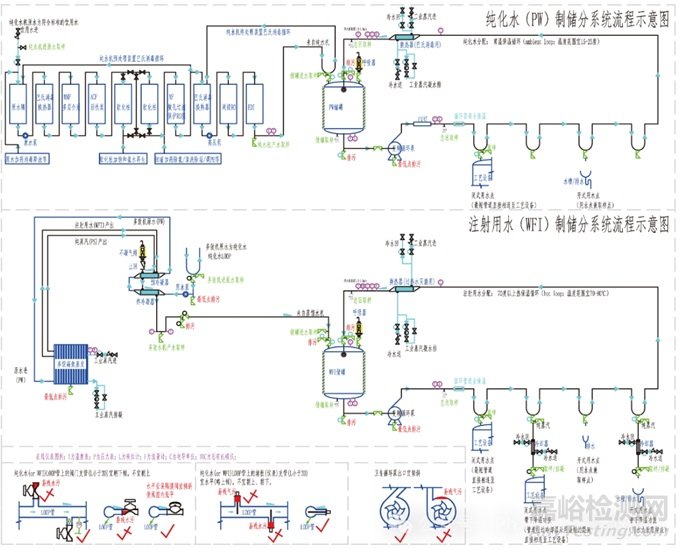 純化水和注射用水根據(jù)水質(zhì)要求需要設(shè)計(jì)各自合適的制水、儲(chǔ)存及分配系統(tǒng)。在制藥用水系統(tǒng)的設(shè)計(jì)、實(shí)施、調(diào)試、運(yùn)維等方面,要樹(shù)立基于科學(xué)知識(shí)、基于風(fēng)險(xiǎn)評(píng)估的理念。不能簡(jiǎn)單地理解為僅僅要求是水系統(tǒng)的用水點(diǎn)出水的水質(zhì)符合藥典標(biāo)準(zhǔn)即可,而是要站在 GMP 的高度,厘清做法思路。作為藥品生產(chǎn)的一種重要原輔料,純化水和注射用水從系統(tǒng)設(shè)計(jì)、材質(zhì)選擇、制備過(guò)程、儲(chǔ)存、分配和使用均應(yīng)符合藥品生產(chǎn)質(zhì)量管理規(guī)范的要求。領(lǐng)悟質(zhì)量源自設(shè)計(jì)(QbD :quality by design)的理念,純化水和注射用水的水質(zhì)“不是簡(jiǎn)單地僅僅依靠最終檢驗(yàn)出來(lái)的,而是通過(guò)良好過(guò)程控制生產(chǎn)制造出來(lái)的,更是需要精心設(shè)計(jì)出來(lái)的”。根據(jù)醫(yī)藥及制藥裝備行業(yè)發(fā)展整體情況,吸收風(fēng)險(xiǎn)管控思維,實(shí)現(xiàn)制藥用水系統(tǒng)的風(fēng)險(xiǎn)可接受的水質(zhì)安全、水質(zhì)受控、水質(zhì)可控。當(dāng)然,在風(fēng)險(xiǎn)可控的情況下,不能過(guò)分不計(jì)成本,純化水和注射用水的制備、儲(chǔ)存、分配系統(tǒng)的設(shè)計(jì)要科學(xué)合理,首先要詳細(xì)了解、認(rèn)知水質(zhì)各指標(biāo)的由來(lái)意義等科學(xué)知識(shí),掌握水處理制備及儲(chǔ)分裝備的原理、難點(diǎn)關(guān)鍵,不能過(guò)度設(shè)計(jì),當(dāng)然也不能設(shè)計(jì)考慮不周、導(dǎo)致缺陷設(shè)計(jì)。要在恰當(dāng)?shù)牡胤绞褂煤线m的水,如果使用低標(biāo)準(zhǔn)的水,則不符合生產(chǎn)要求,如果使用過(guò)高標(biāo)準(zhǔn)的水,則會(huì)增加生產(chǎn)成本。純化水和注射用水均有各自的藥典水質(zhì)標(biāo)準(zhǔn),GMP 強(qiáng)調(diào)的是過(guò)程控制,強(qiáng)調(diào)的是如何防止超標(biāo)(OOS:out of specification)和超趨(OOT:out of trend),不同水質(zhì)要求的水系統(tǒng)制備儲(chǔ)分消毒滅菌頻率等管控要求雖有類(lèi)似但不盡相同,特別是微生物限度指標(biāo),WFI 相比 PW 來(lái)言“嚴(yán)格千倍”,故應(yīng)根據(jù)具體水質(zhì)監(jiān)測(cè)、確認(rèn)、驗(yàn)證等情況,區(qū)分不同水質(zhì)要求而采用不同管控舉措,沒(méi)有最好只有最適合,不能把注射用水的控制污染要求生搬硬套到純化水系統(tǒng),否則會(huì)增大不必要的成本浪費(fèi)。