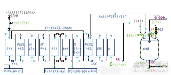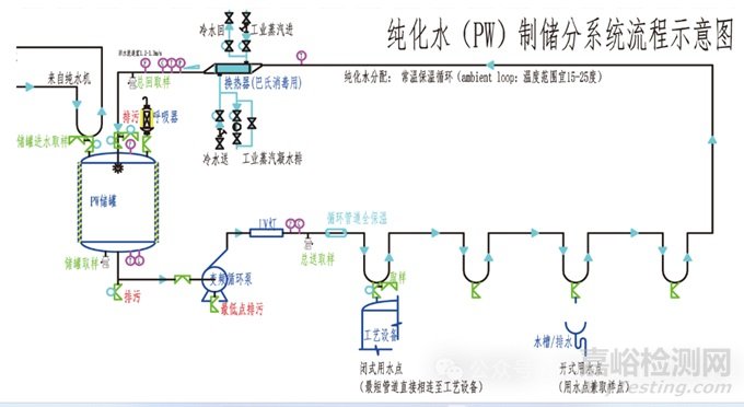 圖 1 純化水和注射用水制備、儲(chǔ)存與分配系統(tǒng)流程示意圖