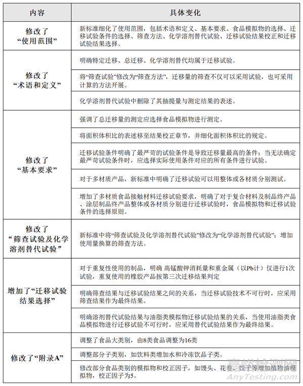 總遷移試驗條件部分增加了室溫及以下溫度的短期接觸使用條件;明確了各預(yù)期使用條件的表述;明確了連續(xù)經(jīng)歷兩個或多個使用條件時,總遷移試驗也要按照實際使用情況順次選擇相應(yīng)的條件。