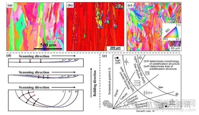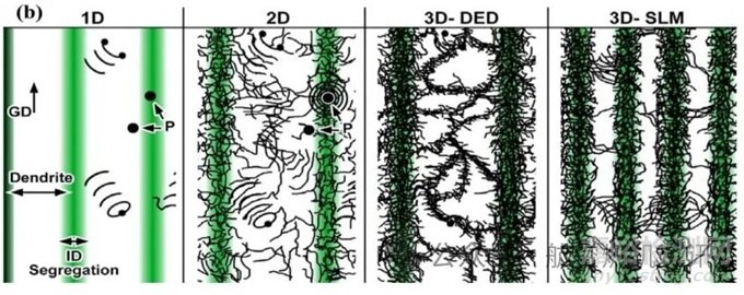 工藝參數(shù)優(yōu)化是目前最為常用的顯微組織缺陷控制方法,主要是通過體能量密度公式來確定合理的加工參數(shù)窗口。但隨著對能量密度公式的研究逐漸深入,研究人員發(fā)現(xiàn)現(xiàn)有能量密度公式已難以對工藝參數(shù)進(jìn)行精確調(diào)控,急迫需要對其進(jìn)行修正。為解決PBF成形金屬部件因其內(nèi)部粗大柱狀晶所造成的嚴(yán)重的各向異性,研究人員期望將其轉(zhuǎn)變?yōu)榧?xì)小等軸晶來提高其力學(xué)性能,主要有以下四種方法: