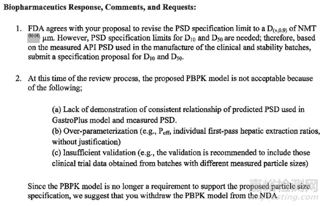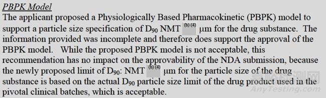 FDA建議企業(yè)撤回用于PSD限度制定的PBPK模型,因為PSD限度的制定要求已滿足,是基于原料藥制備得到相應關鍵批次的支持數(shù)據(jù)。