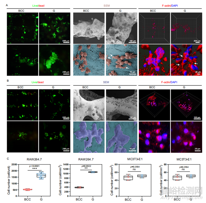 圖4 具有BCC和G孔單元的Zn-Li多孔支架的RAW264.7和MC3T3-E1細(xì)胞的體外生物相容性評(píng)估