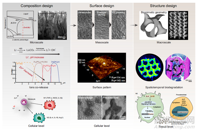 圖9 用于免疫調(diào)節(jié)成骨的3D打印可生物降解Zn多孔支架的多尺度集成設(shè)計(jì)