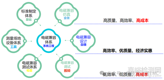 電磁兼容嚴(yán)格意義上來(lái)說(shuō)是個(gè)體系工程,包括標(biāo)準(zhǔn)制定、測(cè)量場(chǎng)地與設(shè)備、測(cè)試實(shí)驗(yàn)室體系、場(chǎng)地設(shè)備計(jì)量、EMC分析調(diào)試、EMC設(shè)計(jì)、EMC仿真等。大家常說(shuō)的EMC工程師通常是指EMC整改工程師,或者EMC測(cè)試工程師,是具有一定的局限性的。