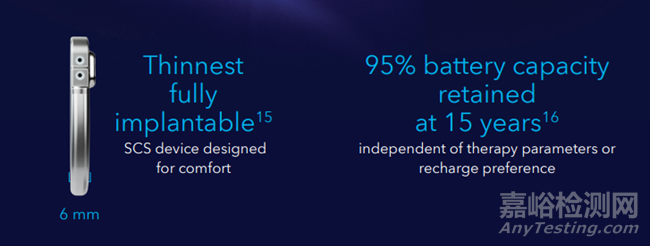 便于檢查:Inceptiv SCS目前唯一能夠允許全身1.5T 和 3T MRI掃描的脊髓刺激器,是世界上最小、最薄的完全植入式SCS設(shè)備。