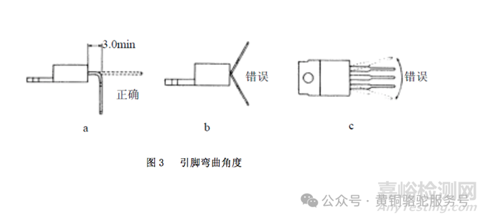 c) 引線彎曲角度不能大于90 而且不要使引線反復彎折見圖3b;