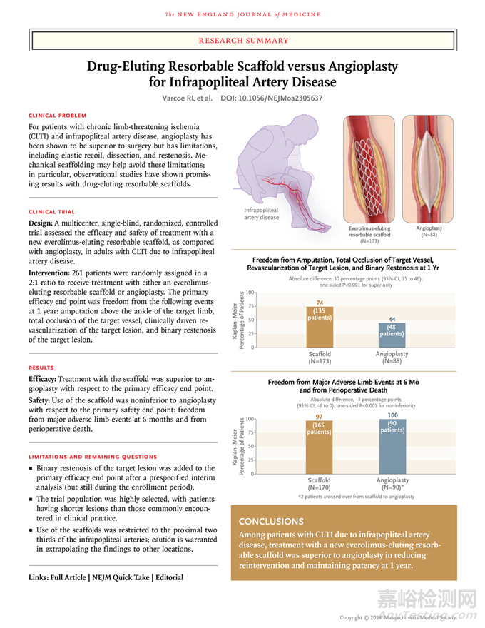 2023 年 10 月,在舊金山舉行的第 35 屆經(jīng)導(dǎo)管心血管治療 (TCT) 會(huì)議上,評(píng)估了雅培 Esprit BTK 系統(tǒng)的 LIFE-BTK 試驗(yàn)作為一項(xiàng)最新臨床試驗(yàn)發(fā)表,并同時(shí)發(fā)表在《新英格蘭醫(yī)學(xué)雜志》上。試驗(yàn)結(jié)果表明,與目前的護(hù)理標(biāo)準(zhǔn)球囊血管成形術(shù)相比,Esprit BTK 系統(tǒng)可減少疾病進(jìn)展并有助于改善醫(yī)療結(jié)果。