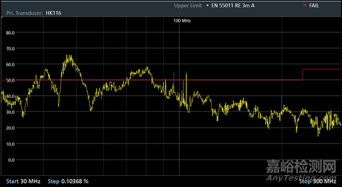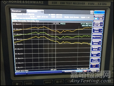 以下針對電流探頭結(jié)果和輻射電場測試結(jié)果進(jìn)行一些對比研究。
