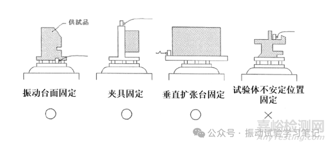 單點(diǎn)控制(single point control),適用于小型、剛性比較高的試驗(yàn)體。如下圖所示控制點(diǎn)加速度傳感器的各種固定方式,一般不建議安裝在試驗(yàn)體不安定的位置,控制點(diǎn)的位置應(yīng)能使試件在振動(dòng)試驗(yàn)中的振級(jí)輸入較真實(shí)的模擬實(shí)際振動(dòng)環(huán)境??刂泣c(diǎn)選擇一般遵循以下兩個(gè)原則:一是控制點(diǎn)的位置應(yīng)選在試驗(yàn)體與振動(dòng)夾具連接面的連接螺孔附近。沒(méi)有夾具的則選在試驗(yàn)體與振動(dòng)臺(tái)面的連接螺栓附近。二是振動(dòng)控制點(diǎn)應(yīng)遠(yuǎn)離干擾源。如天線、電機(jī)、及容易出現(xiàn)撞擊和噪聲的部位。