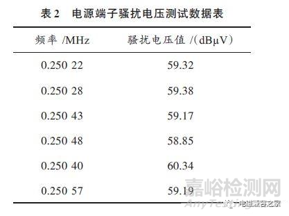 在頻率為0.25MHz實(shí)驗(yàn)室數(shù)據(jù)測(cè)試如表2所示,對(duì)電源端子N線的騷擾電壓進(jìn)行6次單獨(dú)測(cè)量。