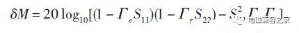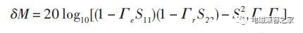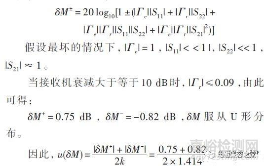 接收機(jī)和LISN中間阻抗不匹配引起的不確定性δM修正值為: